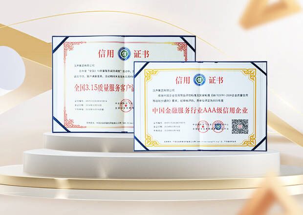 汉声集团连续五年获得「全国315质量服务客户满意诚信金融企业」和「中国金融服务行业AAA级信用企业」的称号。