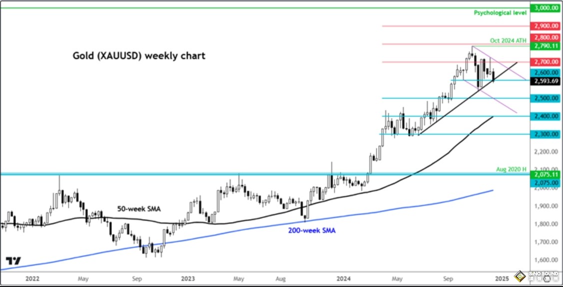如果價格在2025年突破新高,3000美元將是下一個需要關注的重要心理水準。預計此處至少會出現一些獲利回吐。