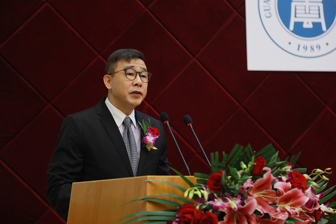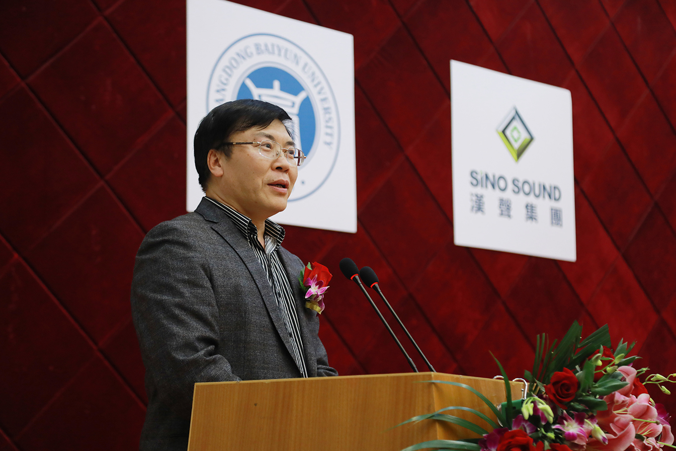 黃大乾校長在發言中介紹了廣東白云學院的教育與管理優勢,他表示:“培養技術應用型人才是廣東白云學院作為職業技術型學校的特色,與漢聲集團合作創辦漢聲商學院是學校的又一個創舉。”他感謝漢聲集團的支持,學校將緊緊圍繞“應用”兩個字做文章,與漢聲一起把漢聲商學院辦得更好。