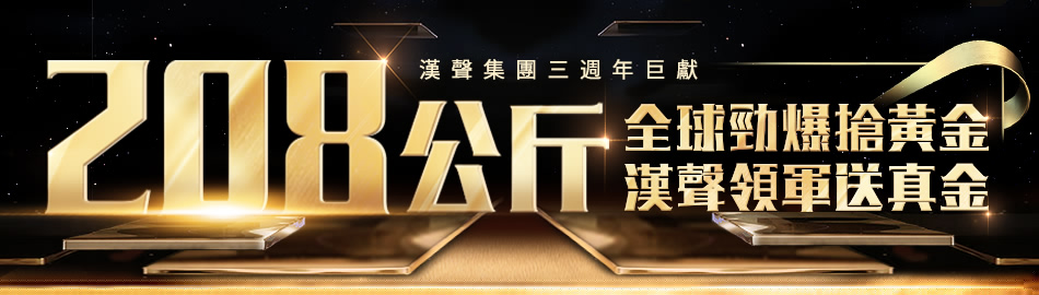 為了答謝廣大客戶的支持和信任,借三週年之喜漢聲特意出資千萬美元,以208公斤黃金回饋全球客戶,最高可獲得10公斤瑞士賀利氏金條終極大獎。