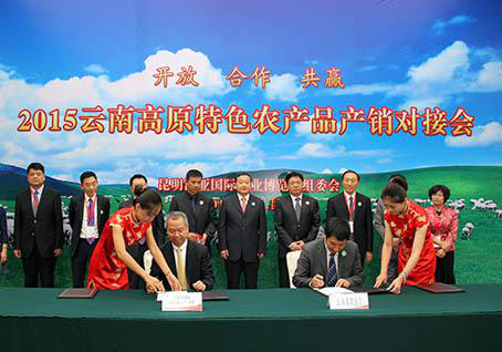大嘉清真總裁鄺啟順(前排左二)與雲南省農業廳副廳長杜建輝(前排右二)簽訂合作意向書